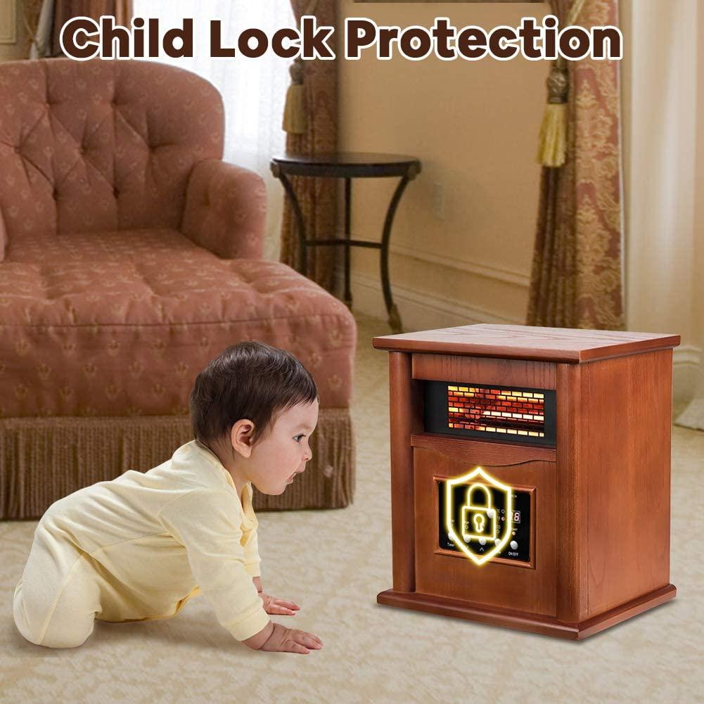 - 【Stylish Design & Wood Cabinet 】The infrared quartz heater is durable and nice looking with real wood frame. The fashionable appearance of elaborate design can be used as a beautiful decoration in a room. Even after long hours of work, the surfaces of the wooden cabinets remain cool to the touch, so you can safely have these around children.