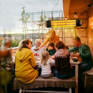 - Equipped with an adjustable tripod stand (up to 75 inches)
