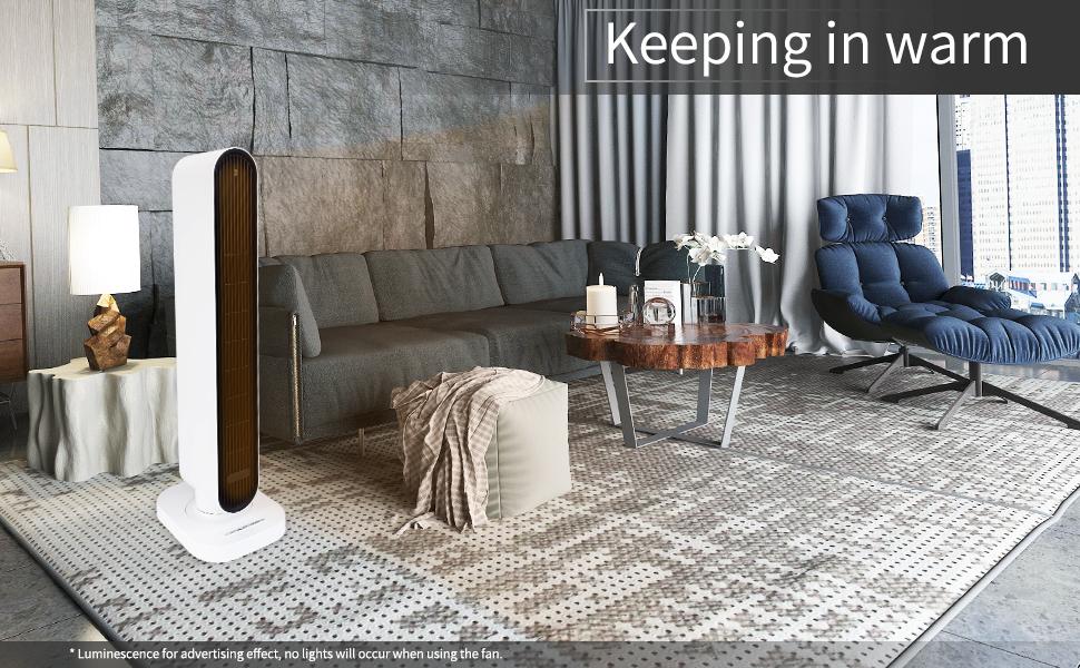 [Whole Room Heating] This tower heater equipped with a 1500W powerful ceramic PTC heating element motor to deliver warmth 45°widespread oscillation helps heat cover every corner of your room.