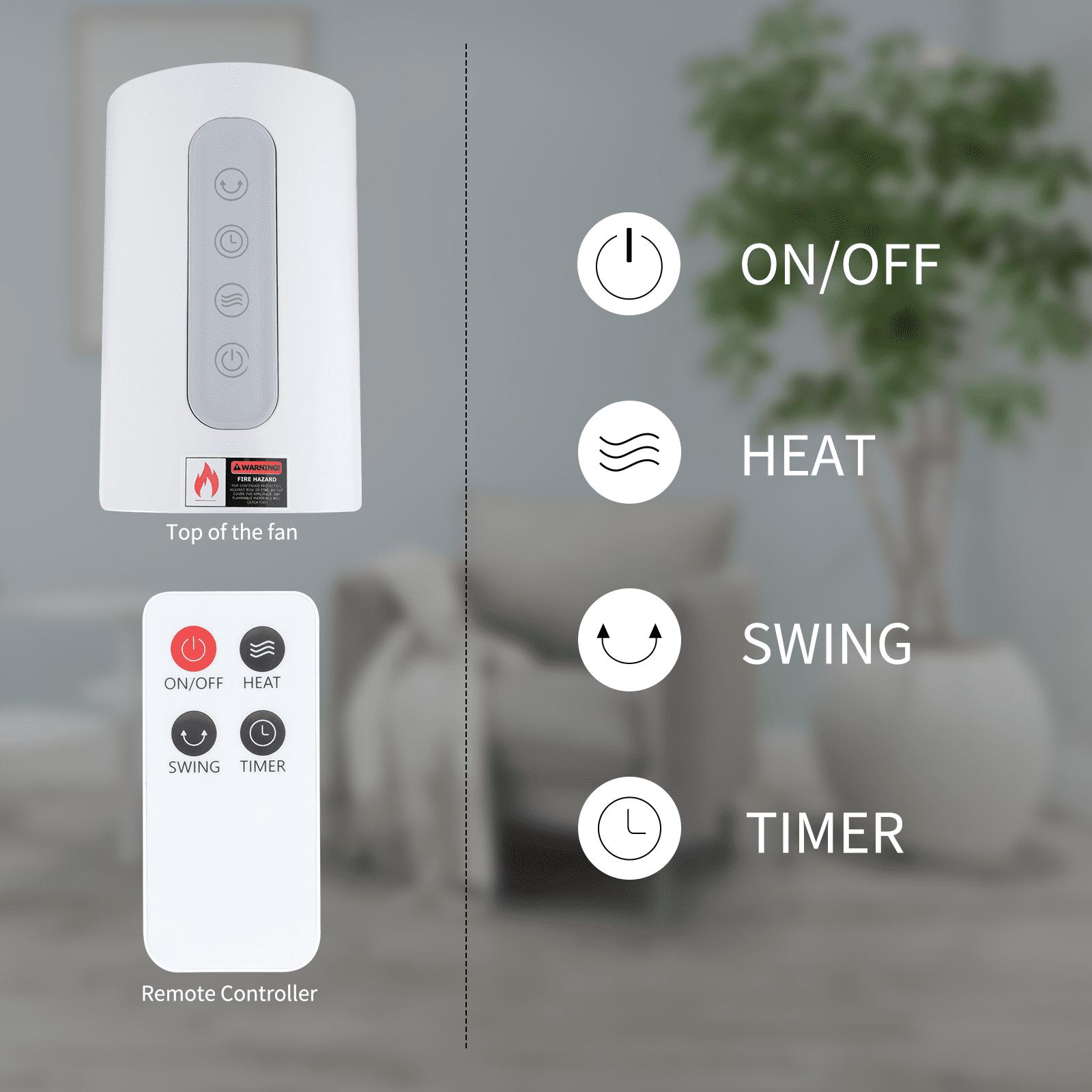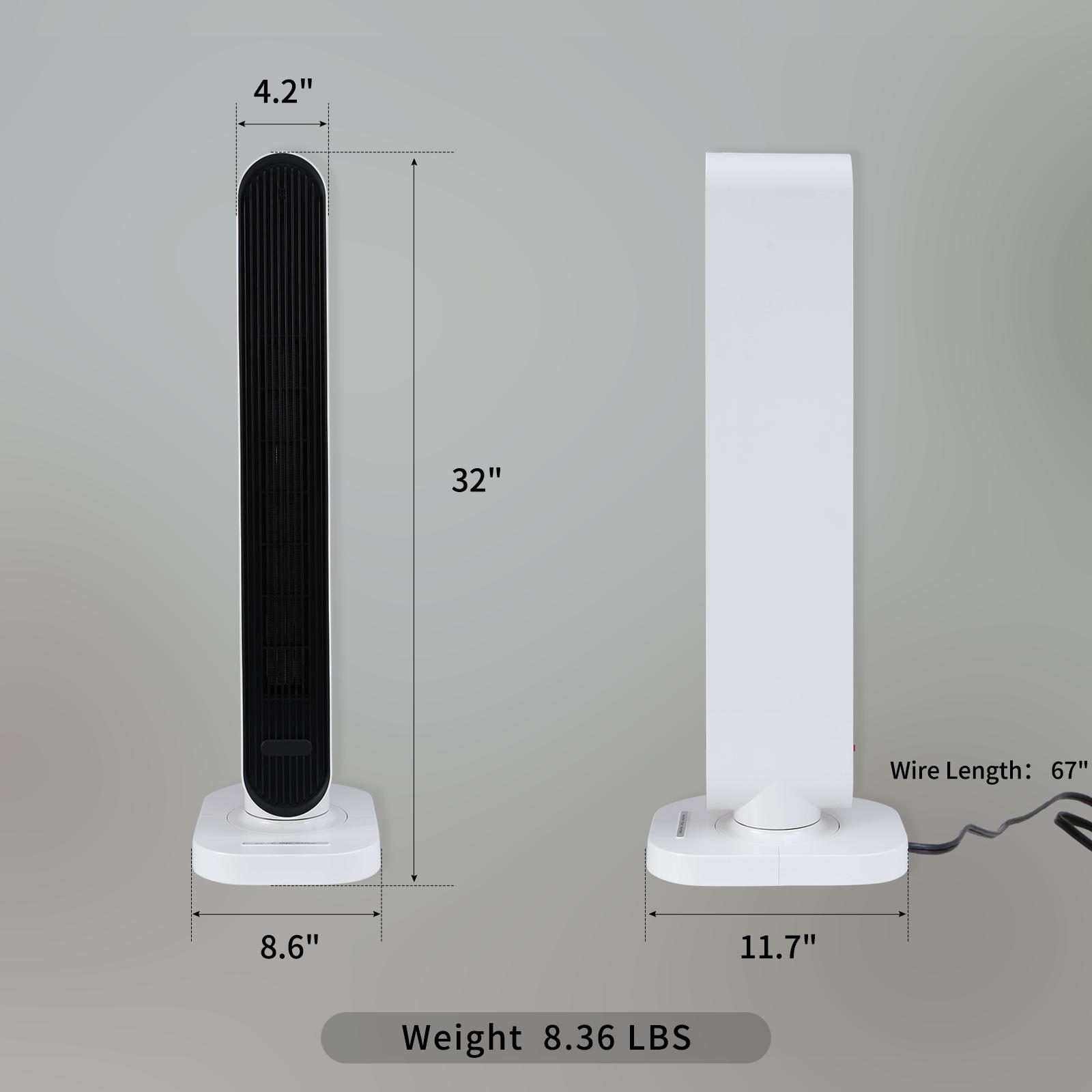 [Whole Room Heating] This tower heater equipped with a 1500W powerful ceramic PTC heating element motor to deliver warmth 45°widespread oscillation helps heat cover every corner of your room. [4 Modes Settings] The heater contain with 4 comfort settings including high heat, mid heat, low heat or fan only. The high-powered oscillating heater quickly makes up any room more relaxing. The power of the fan helps to distribute warmth quickly. [Safe to Use] The space heater includes built-in protection from getting too hot, in addition to the self-regulating element for additional safety. [Remote Control & Built-in Timer] The adjustable thermostat provide 6-hour auto-off timer and adjust the heater’s temperature and oscillation from 3 to 5 meters for added convenience. [User-friendly Design] The built-in carry handle and extra-long 5 ft. power cord make it convenient to take from one place to another. It’s suitable for use in a bedroom, a den, home office and other spaces.Electric Space Heater 1500W,Whole Room Tower Space Heater with Remote 4 Heat Modes Setting, Overheating Protection, for Bedroom, Office, and Indoor Use, White,32″