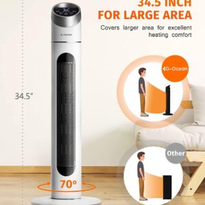 Electric Space Heater for Large Room, 34″ Ceramic Tower Heater with Remote, G-Ocean 1500W Portable Space Heater with 12H Timer, 70° Oscillating, Adjustable Thermostat, Overheating & Tip-over Protection for Garage, Home Office Indoor Use, GHTF1502 NEW