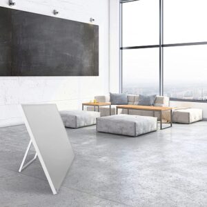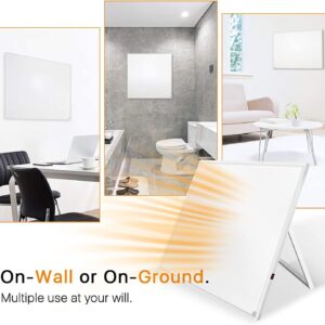 - 【Portable and Writable and Stylish】Portable with an al-alloy square back stand. Thanks to its lightweight and stylish design, it is very easy and comfortable to carry and place. The white surface is applicable for writing and painting as a white board .This innovative, sleek, white gloss panel offer a stylish heating solution. It is specifically designed to blend in with a room seamlessly without disrupting a room’s looks or décor.
