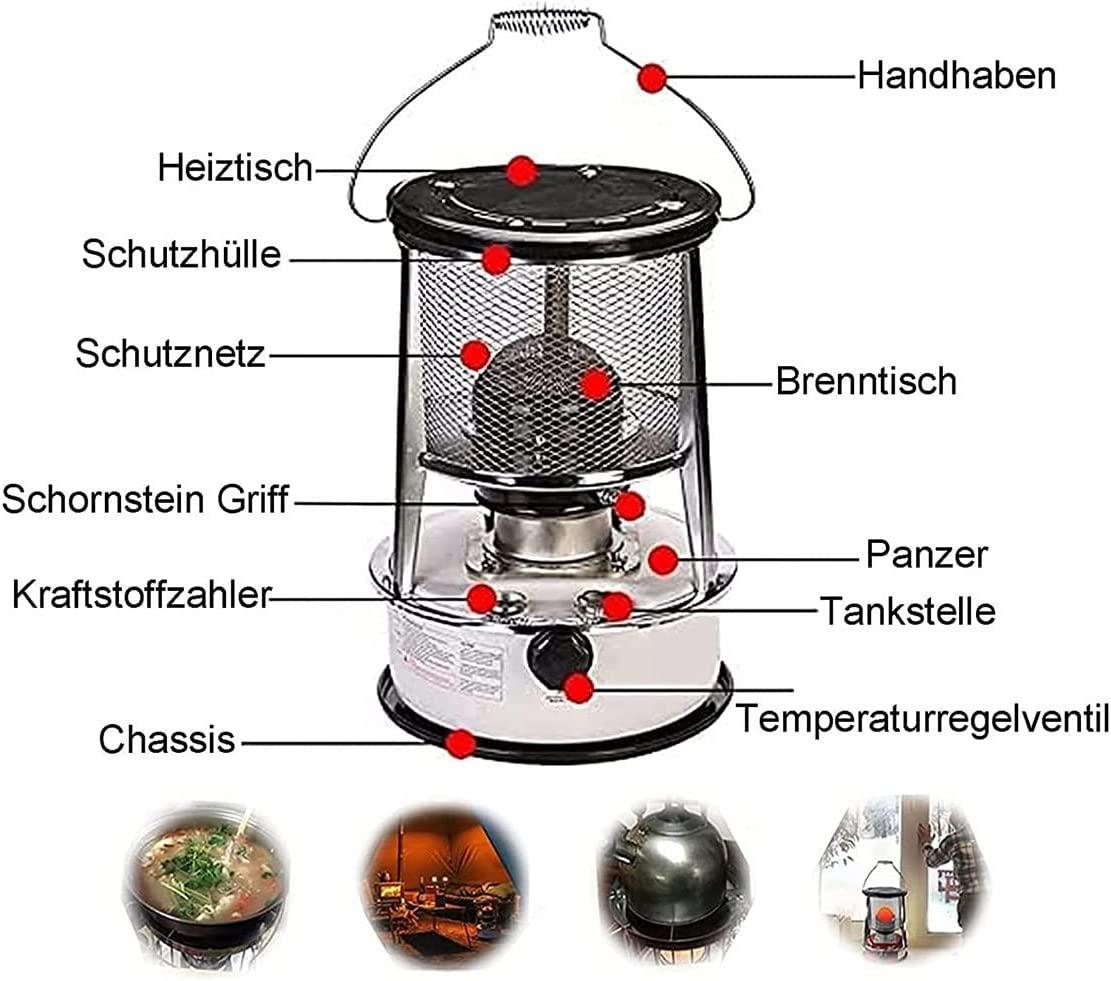 - ☛ Applicable scenarios: Multifunctional kerosene stove kerosene heater is very suitable for emergency use or daily use, can be used for indoor and outdoor heating, outdoor without electricity camping, camping ice fishing, mobile heating; it can boil water, cook, barbecue, etc.; it is an outdoor sports hobby must-have items.