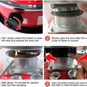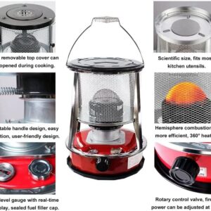 - ? Ease of Use: With the visible fuel gauge, you can easily check your fuel consumption at any time. The toggle switch can ly adjust the fire power to adapt to different temperatures and heating chambers to meet your cooking/heating needs. There is a protective net outside the small kerosene stove to effectively prevent burns.