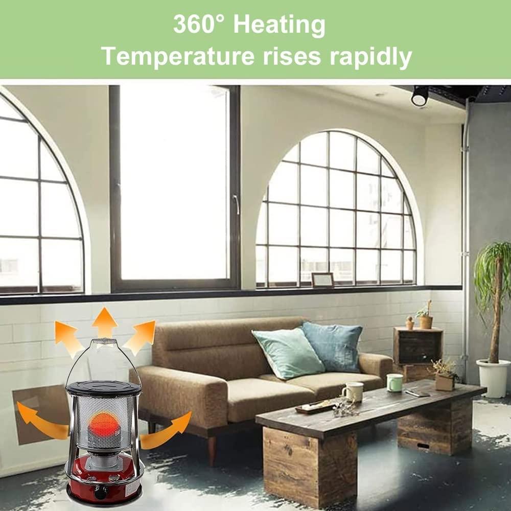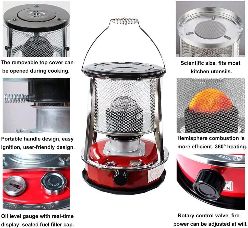 - ✤ The burning fireplace of the oil heater is made of special metal, which makes the kerosene burn completely, heating faster and more efficiently. More efficient and quieter. The heater is 4.6L for easy portability.