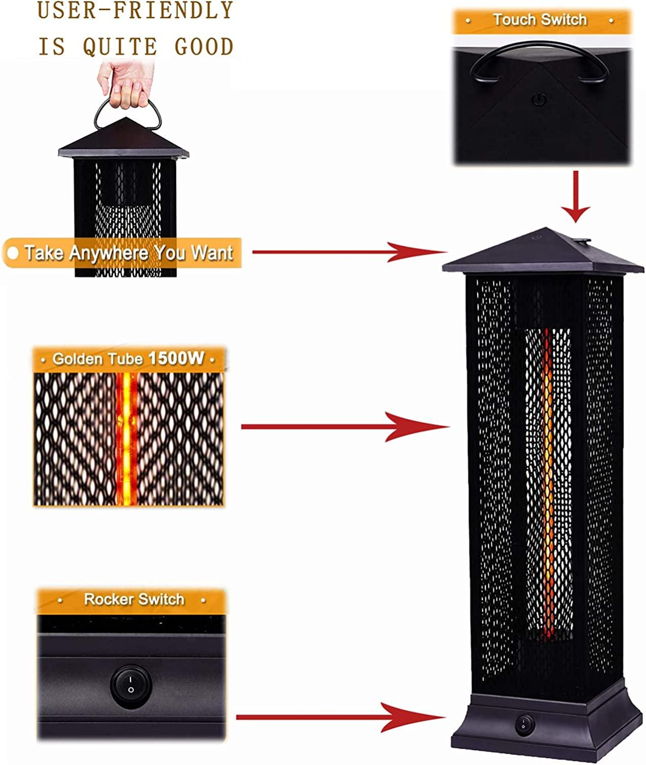 for Outdoor and Indoor Patio Heater,standing Terrace Heater Easy Control Ip55 Waterproof Portable Infrared Radiant Heater Ultra Quiet Work