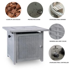 This 28″ slat top gas fire pit table has one stainless steel burner that equal 50,000BTU.