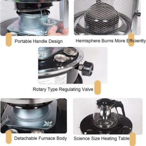 - User-friendly design: The removable top cover can be opened directly when boiling water or cooking. The kerosene stove stabilizer can keep the kerosene stove stable and upright, which is convenient for you to boil water and cook. Portable paraffin heater has the function of log fuel, no gas, no oil, no smoke damage.