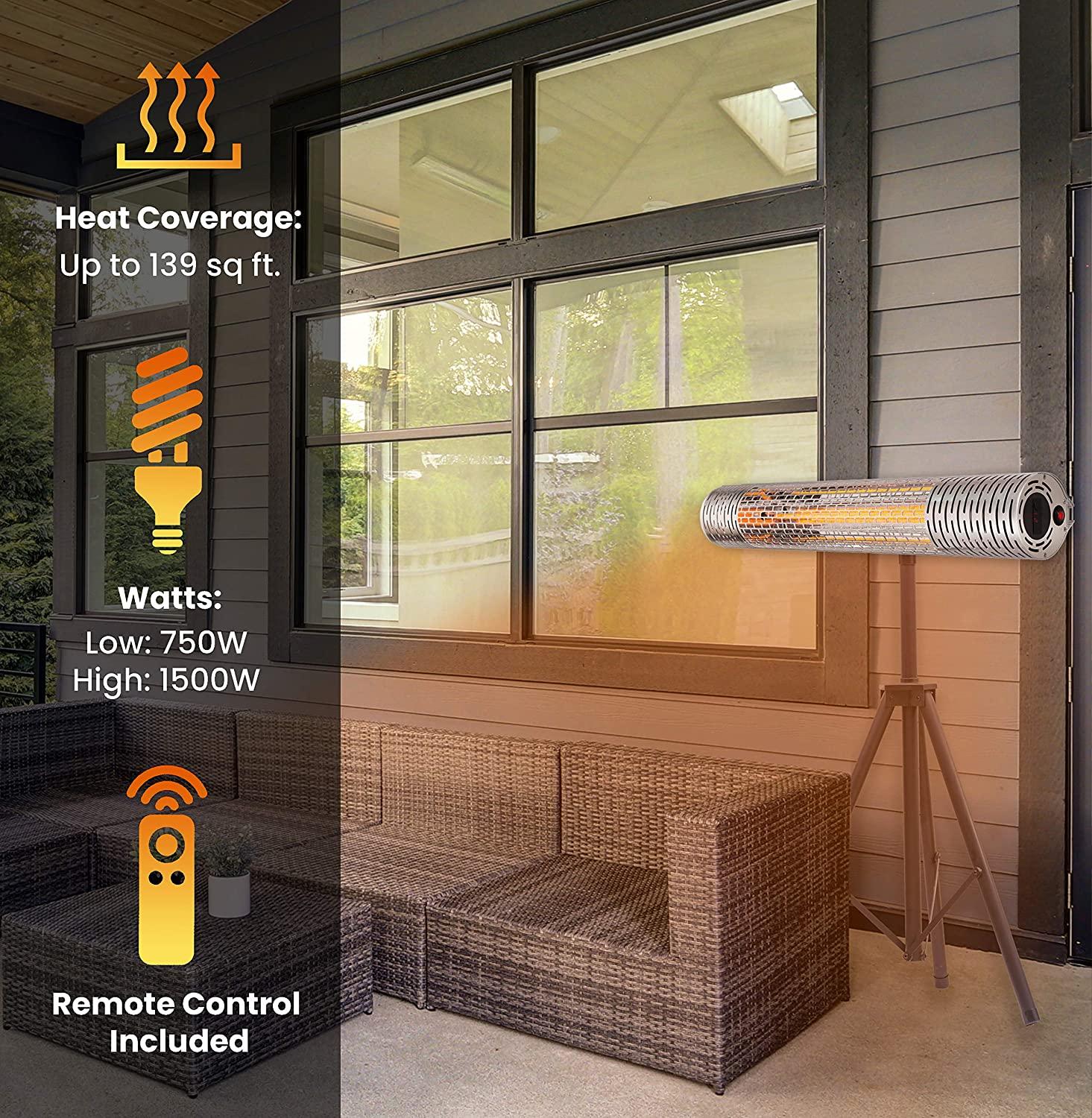 - -POWERFUL EFFICIENT HEAT: This electric heater can transmit heat up to a 56 sq foot radius, perfect to stay comfortable on your patio, porch, balcony, garage or workshop.