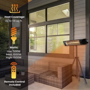 - POWERFUL EFFICIENT HEAT: This electric heater can transmit heat up to a 131 sq foot radius, perfect to stay comfortable on your patio, porch, balcony, garage or workshop.