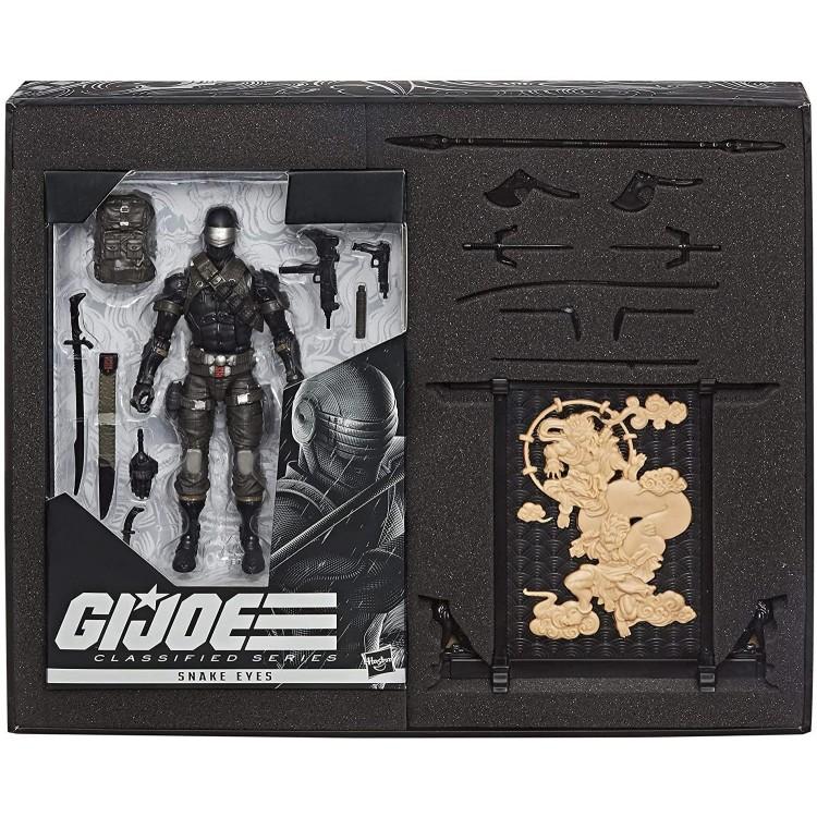- Includes: G.I. Joe Classified Series Snake Eyes action figure, 11 accessories, gear storage rack, and collectible print.