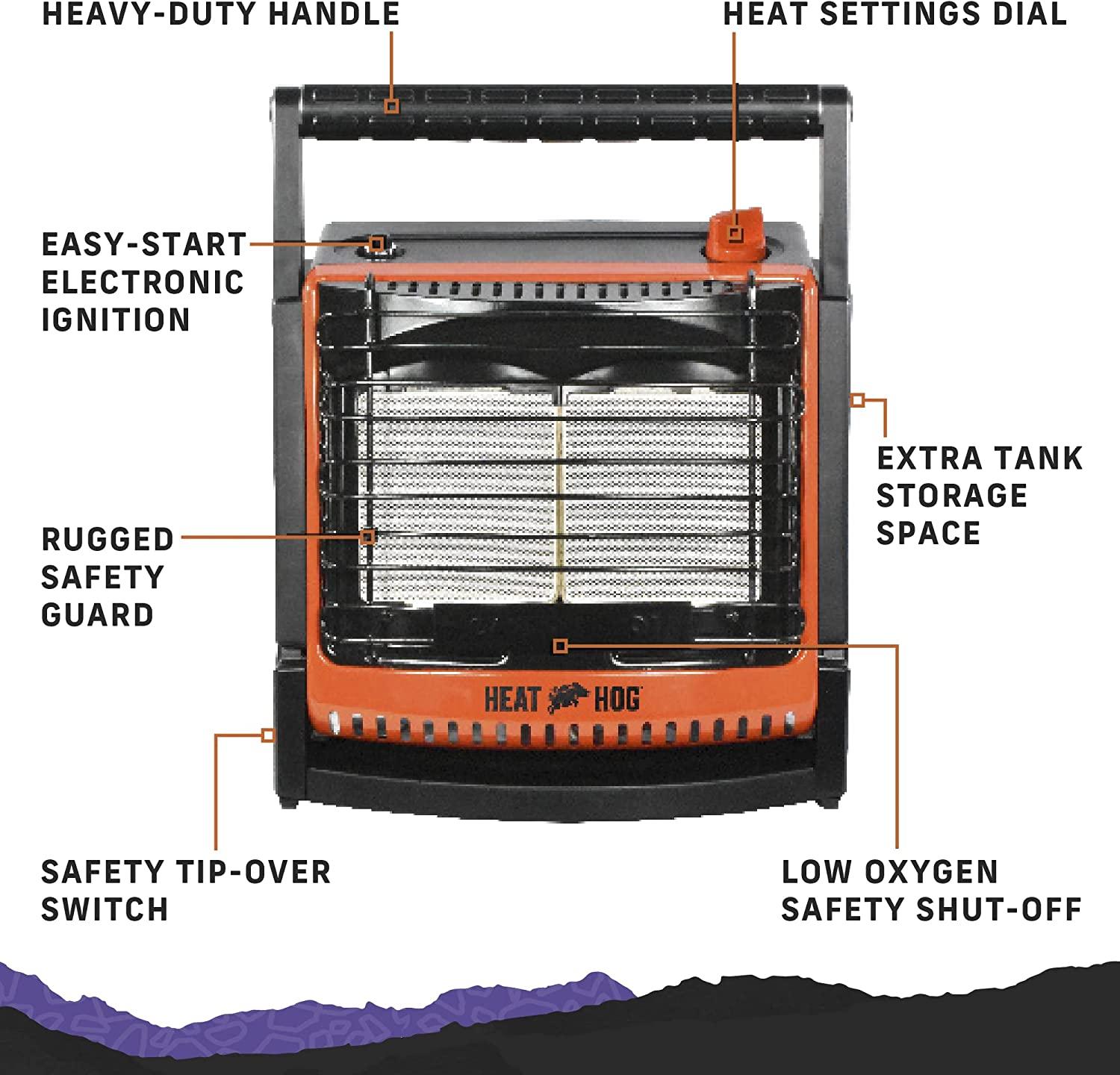 - The Heat Hog is indoor and outdoor safe with the integrated low oxygen shut-off sensor.