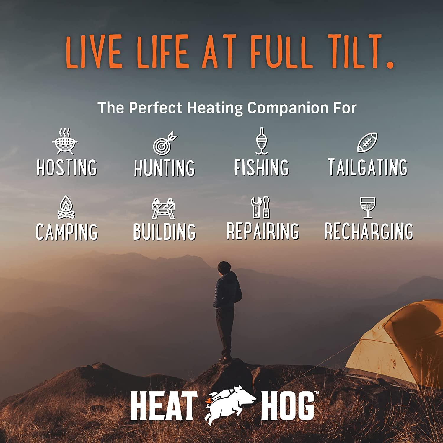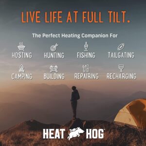 - The Tilt: Adjust the heat and direct it to where you need it most. Heat Hog’s patent pending easy tiltable design ensures that you can control where the radiant heat goes no matter if the heater is placed on a table or the ground. Heat more than just your feet.