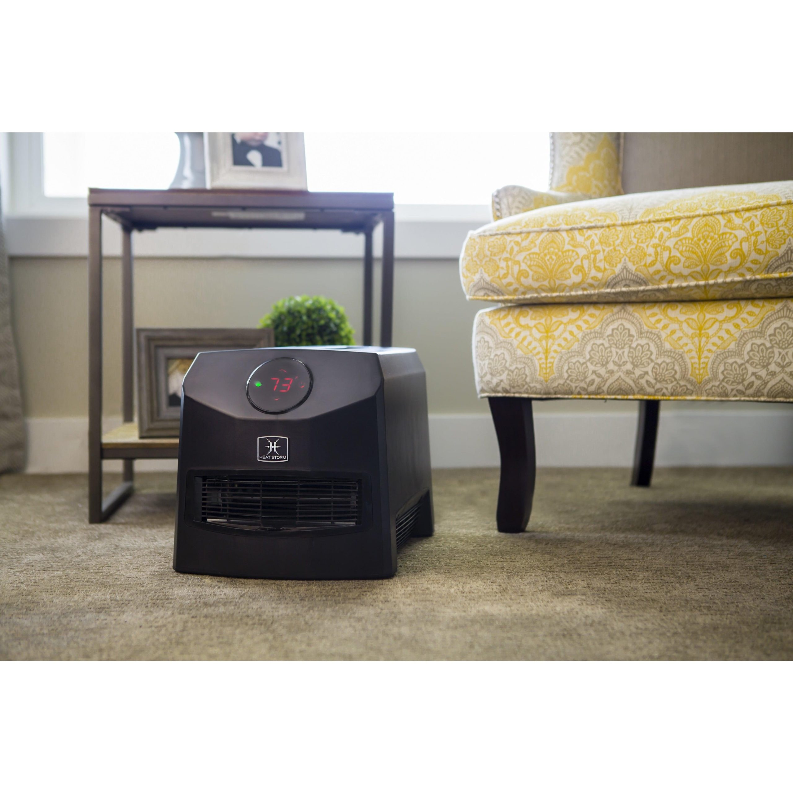 The Heat Storm Mojave Portable Infrared Quartz Heater has space saving design and is ultra-efficient for a medium-large room. This heater features 4 of our quartz infrared elements that are encased in our Patent HMS Technology. Our HMS Technology is double wall heat exchanger that provides better safety features than our competitors by creating a safer heating environment for you. Simply put, you get better heat, quicker delivery, faster heating and runs more efficiently all of which saves you money. All electrical components are warrantied for 1-year. There is lifetime washable air filter. An Eco Setting will reduce the wattage from 1,500 to 750 creating less power consumption. Our stylish Heaters are safe to the touch. This amazing heater also includes a remote control to operate the Digital Thermostat allowing you ultimate control.