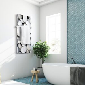 The Heat storm 16” x 48” premium decorative glass heat panel is a lovely decoration piece to add to the decor of any home while providing gentle and energy-efficient heat to any room or workspace. Our wall-mounted glass mural heaters come in a wide array of high-definition photo art to fit the look or style of any room. Heat storm wall mounted glass panel heaters use energy-efficient and highly effective radiant heat to cut down on power consumption and are made without moving components to add to the long life of this beautiful unit. The heater is completely silent and has built-in safety features to provide quiet, but safe heat. The glass heaters are ideal for a 200 sq. foot room.