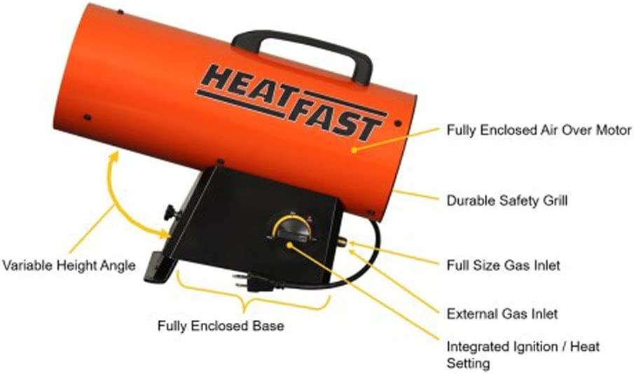 HeatFast HF160G Portable Home, Jobsite, Construction Site Forced Air Liquid Propane Salamander Torpedo Space Heater with Variable Temperature Control, 155,000 BTU, orange