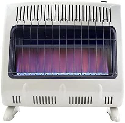 - 30,000 BTU Blue Flame Vent Wall Natural Gas Heater with Blower, Base & Tstat Control