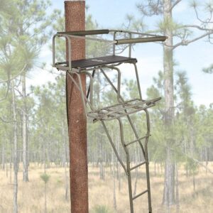Best out of all, the double ladder stand is big enough for two people to hang out on. Take a buddy out on a wilderness trip and climb up on the 2 man deer stand for a fun deer watching experience.