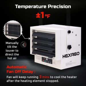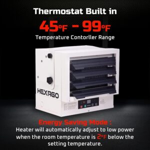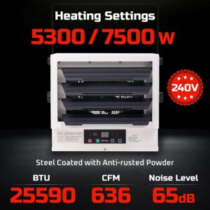 Hexago 7500W Industrial Indoor 240V Electrical Garage Heater Hardwire Space Heater w Remote, Thermostat and Timer, ETL Listed