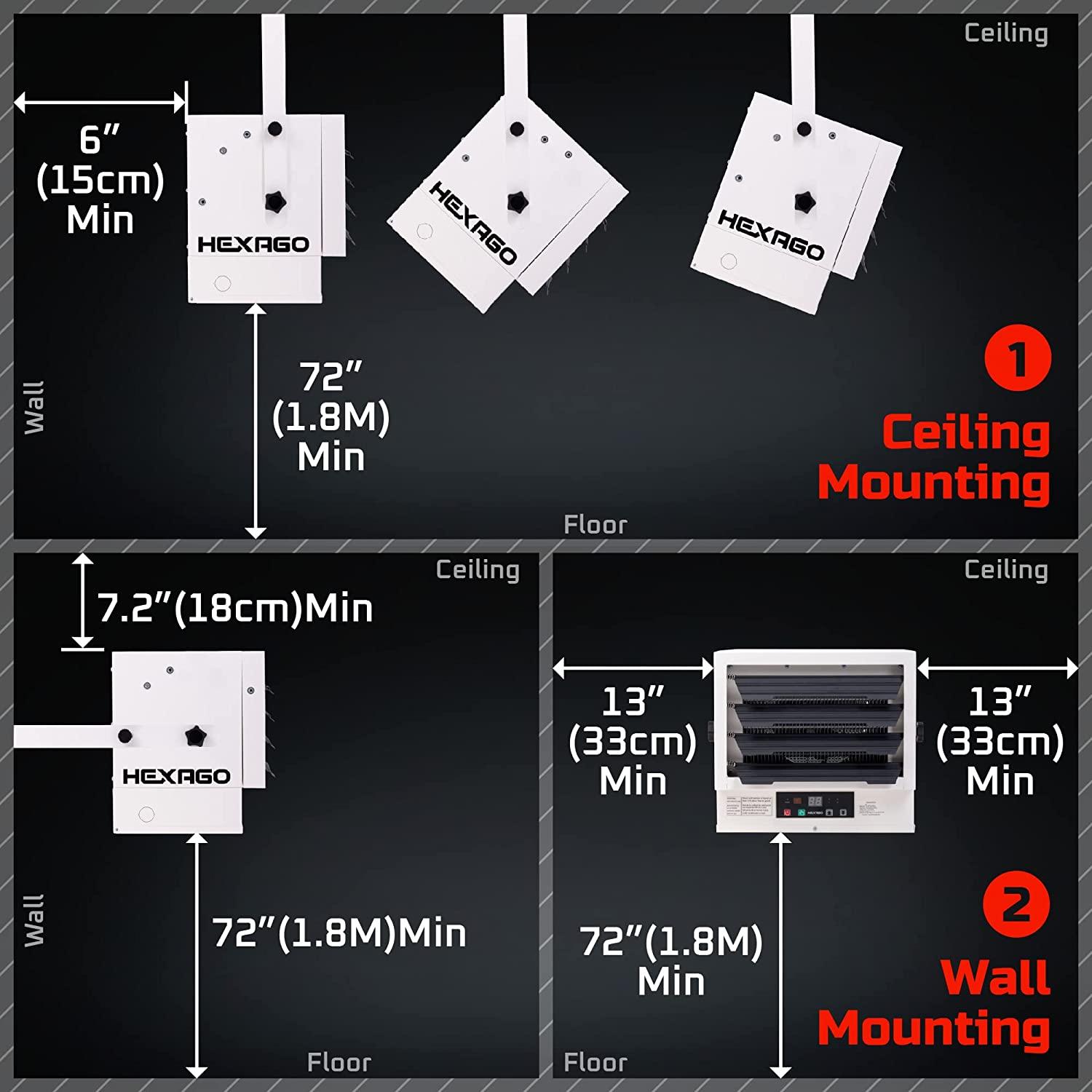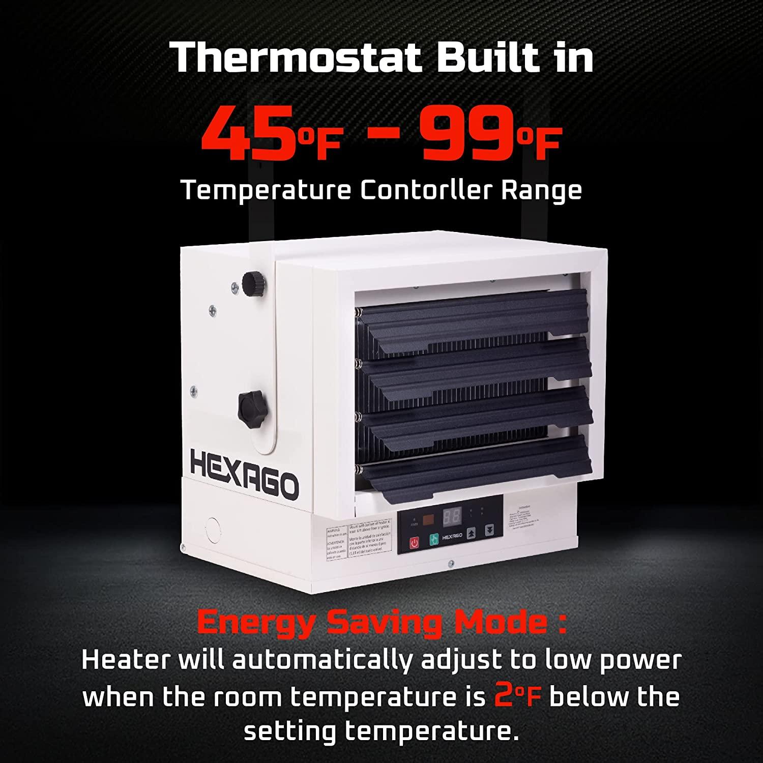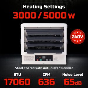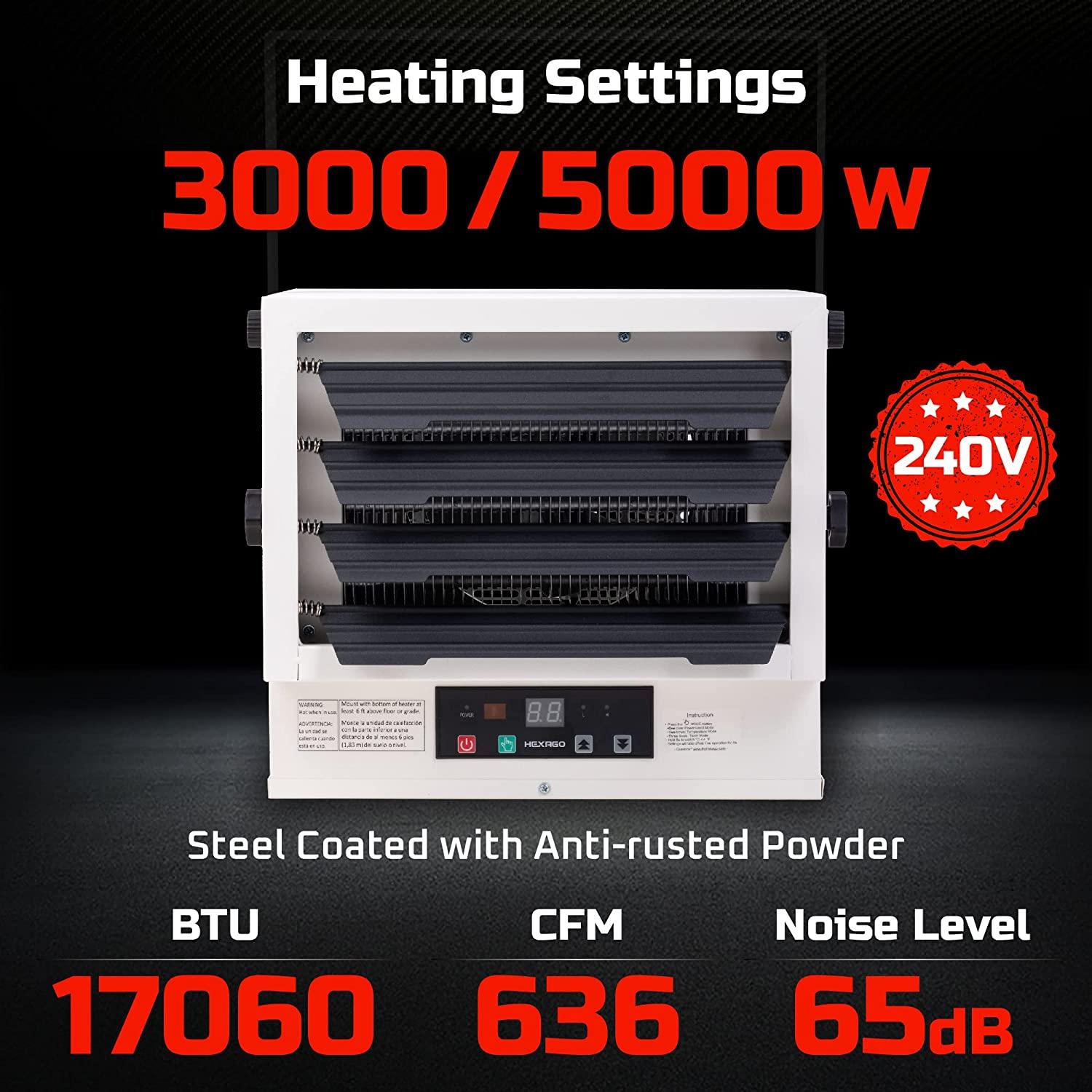 Hexago HEXAGO 5000W Industrial Indoor 240V Electrical Garage Heater Hardwire Space Heater w Remote, Thermostat and Timer, ETL Listed