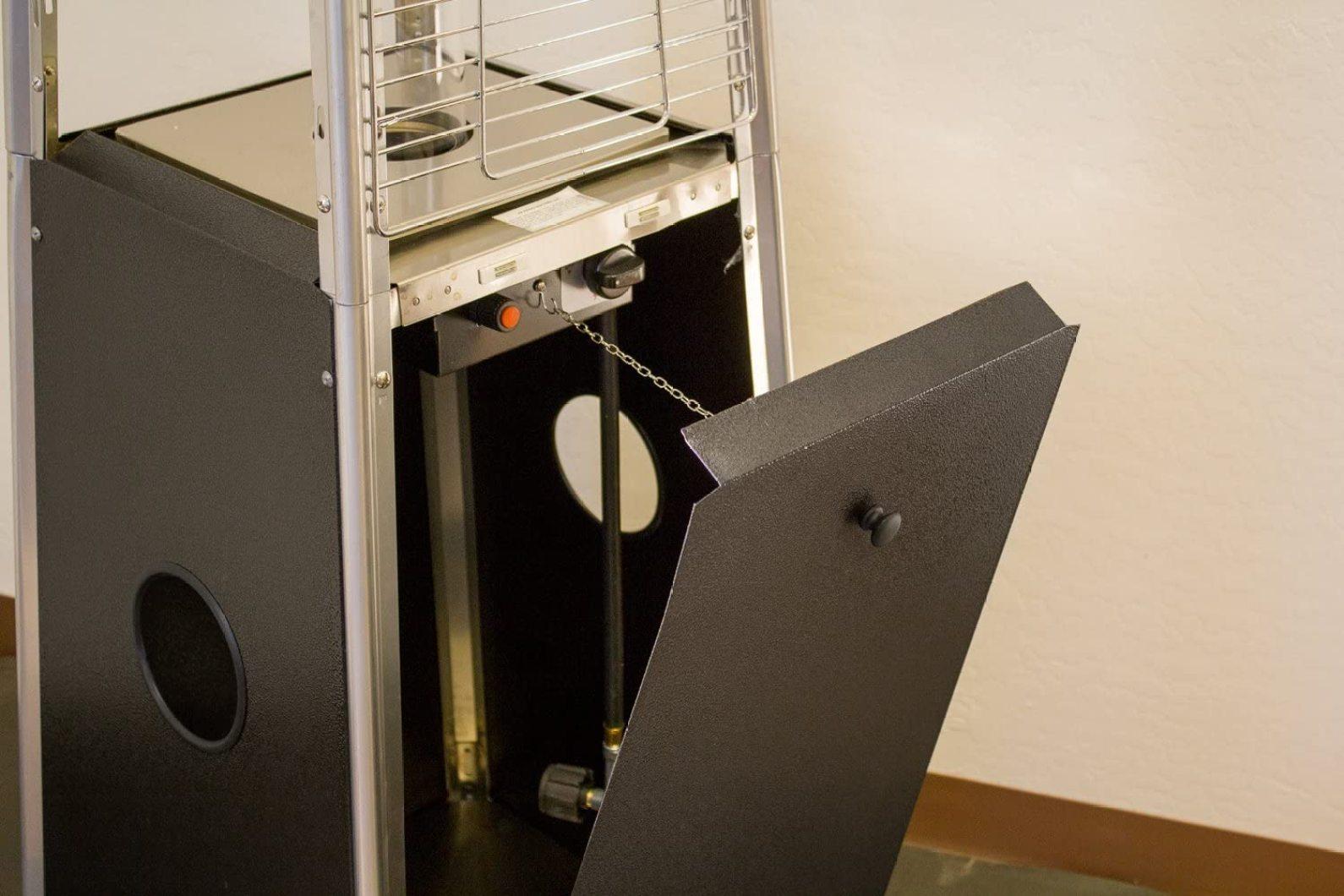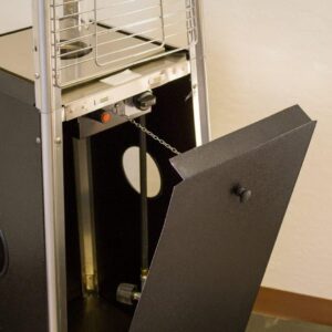 The latest in design and heat, the Quartz Glass Tube Flame Heater brings style to outdoor heating. Its unique, visually mesmerizing flame provides heat in every direction. Watch your friends gather around this beautiful piece of patio art. A safety valve shuts it off automatically if tilted. Attached wheels make moving a snap. One-year manufacturers . Add cozy warmth anywhere.