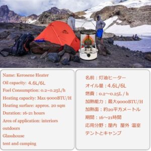 - 【Efficient heating】 The maximum calorific value is 9000 BTU/H (equivalent to 3000W), and the fuel consumption per hour is 0.25L, which can quickly upgrade a room of about 20 square meters.