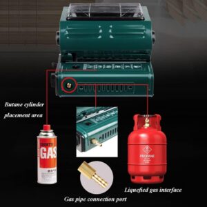 - ★ Compatible with both butane and propane fuel (Fuel not included), gas connector Included. Note: First screw on the gas connector, and then connect the heater and propane tank with an adapter hose (Adapter Hose Not Included).