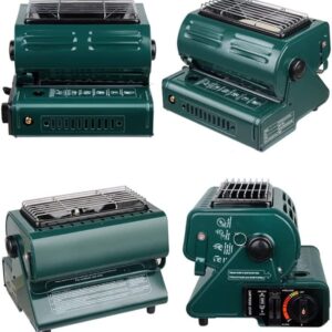 HXSM Camping Gas Heater with Portable Handle Portable Gas Heaters for Home Mobile Butane Heater Compact 2 in 1 Propane Heater & Stove (Color : Green Butane Heater)