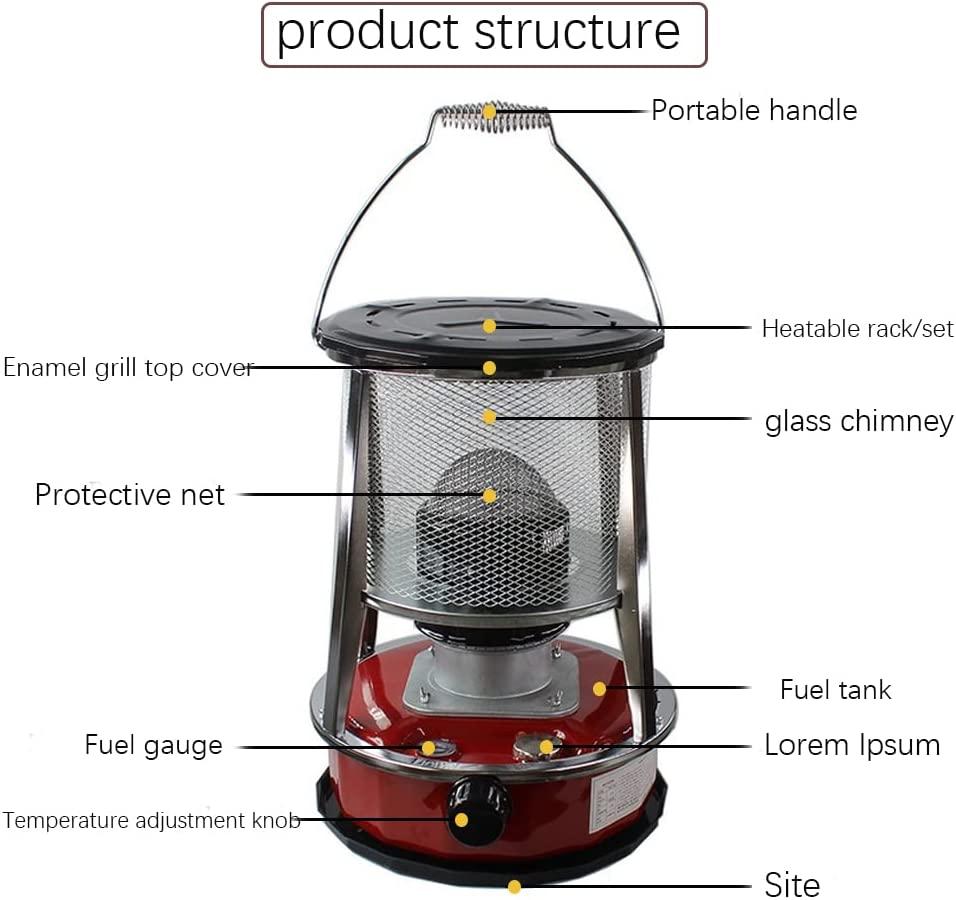 - KEROSENE HEATER:The small oil heater is made of special metal, which means that kerosene is completely burned, heating faster and more efficiently, and the combustion core is made of high-temperature resistant glass fiber and cotton yarn, which is more durable.