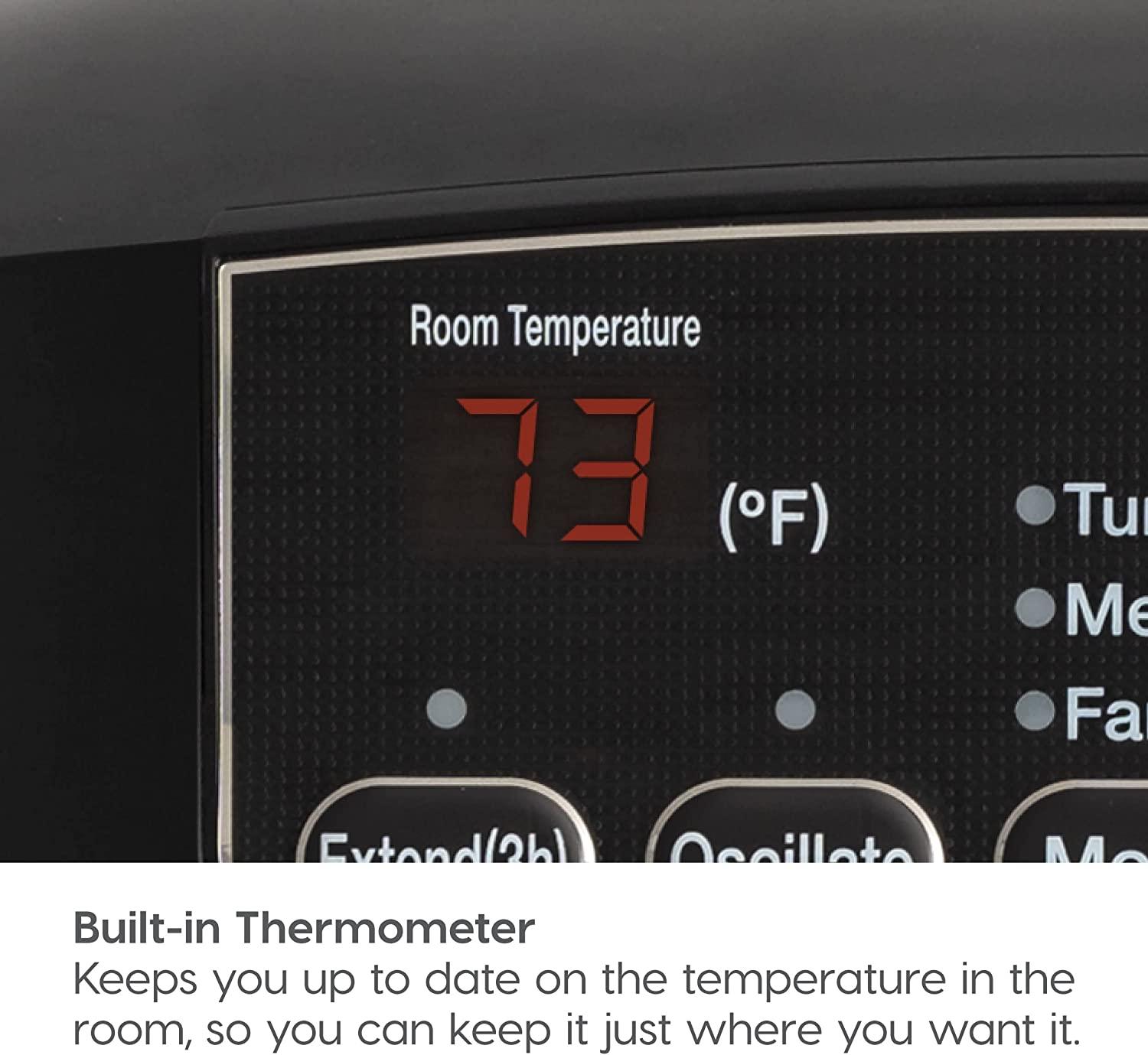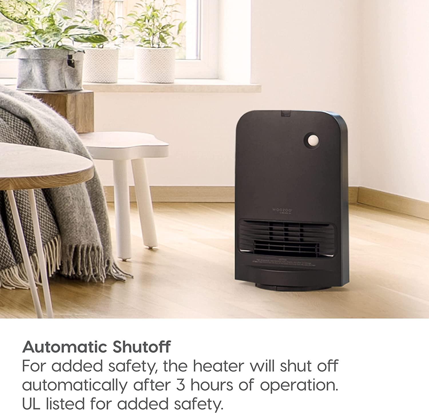 - AUTOMATIC SHUTDOWN: Prevents the heater from running longer than 3 hours continously to save energy. No need to worry about remembering to shut it down. This energy-saving safety feature appeals to people in both houses and apartments. Also a built-in thermometer. The easy-to-read display on the unit keeps track of the current room temperature