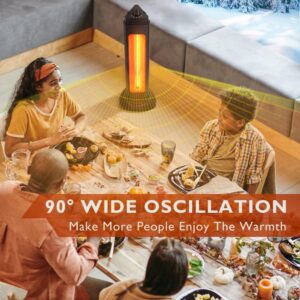 - 【Oscillation Function & Super Quiet】This patio tower heater comes with a oscillation function: This allows more people nearby to feel warm. When you’re watching TV with your family, it’s a great feature to keep everyone warm. And this product is super quiet, you can sleep or work at its maximum power, it will not disturb you at all.