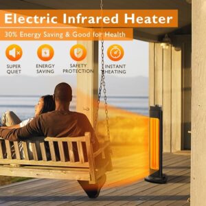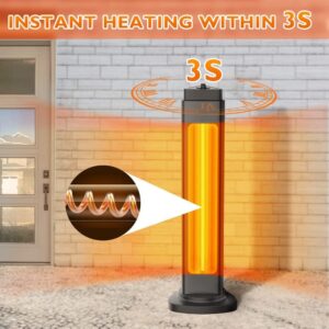 JIYU Electric Patio Heater, Outdoor Infrared Standing Heater with 90° Wide Oscillation, V0 Flame Retardant Material & Hidden Simple Handle, Protection, 1500W, T01-G15, Black, 9.45×9.45×31.50 inch
