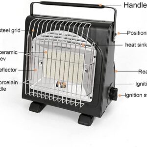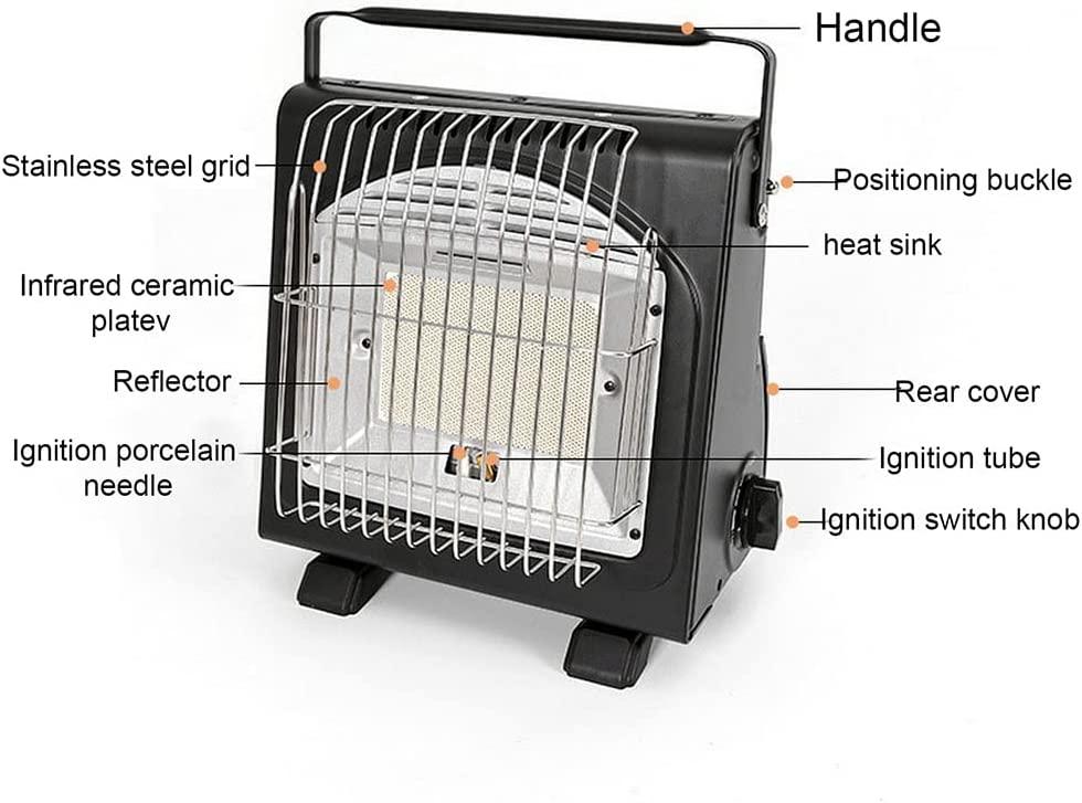 JWW Camping Gas Heater 275 * 275 * 180mm Mobile Gas Stove 2 in 1 Outdoor Warmer 1.7KW Portable Propane Heater Survival Emergency (Color : Black)
