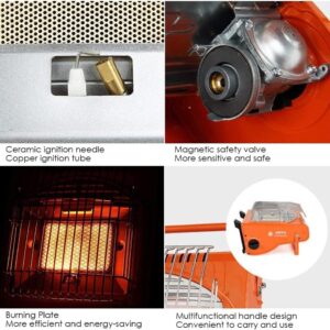 - Piezoelectric ignition, very convenient and safe. With stainless steel protective net to prevent scalding. With handle, it is easy to carry and move.