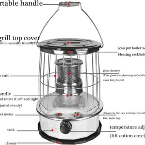 - ♤Glass combustion chimney enables kerosene to be fully burned, and heating is faster and more efficient;