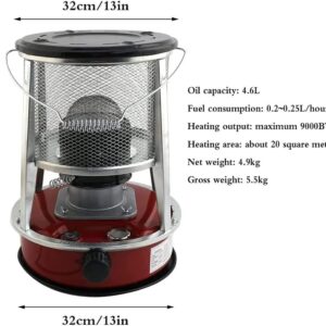 - ☛ High calorific value: the maximum heating output of 4.6L/6L kerosene furnace is 9000-10000 BTU/H, the fuel consumption is 0.2~0.25 liters/hour, and the heating area is about 20-25 square meters. Excellent emergency heat source to heat up the space quickly.