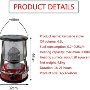 Kerosene Heater Burner, 4.6L Kerosene Stove Mobile Oil Heaters, with Fall Protection Radiant Heater, for Ice Fishing Hiking Hunting Survival Emergency Terrace