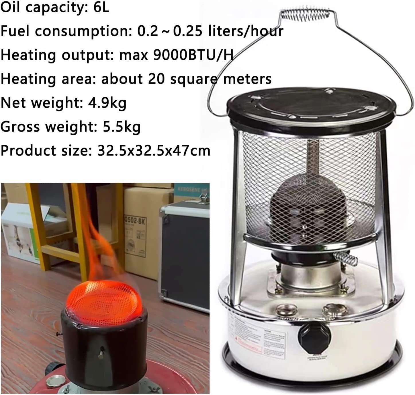 - ☀ Efficient heating: The maximum calorific value of the kerosene stove is 9000 BTU/H (equivalent to 2600W), and the fuel consumption is 0.2~0.25L/hr. Kerosene burns completely, heating faster and more efficiently.