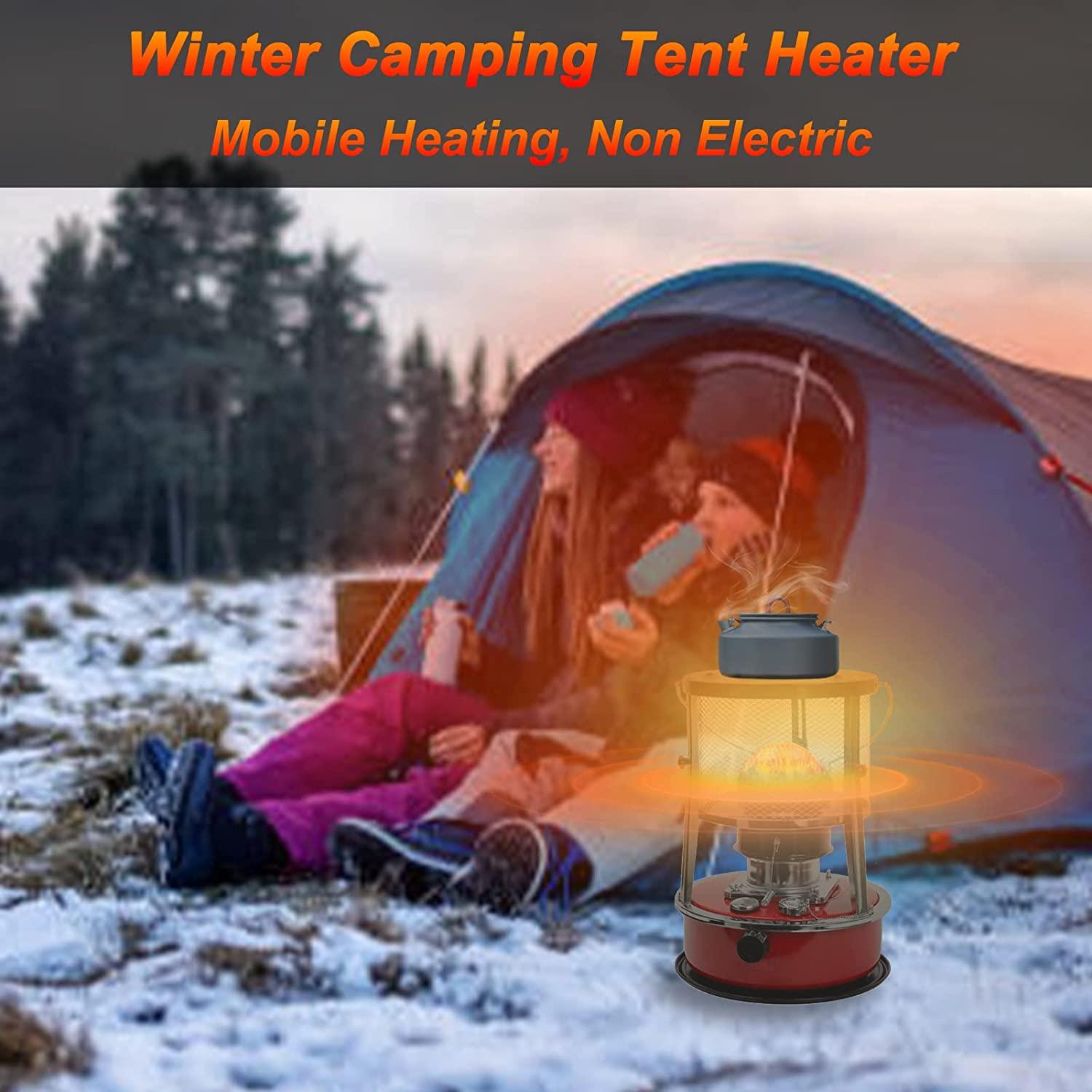 Kerosene Heater for Indoor/Outdoor Use Non Electric Portable Heater with Camping Kettle, 3 Wick, 2600W Small Kerosene Space Heaters, Kerosene Stove for Patio, Fishing, Tent Heater