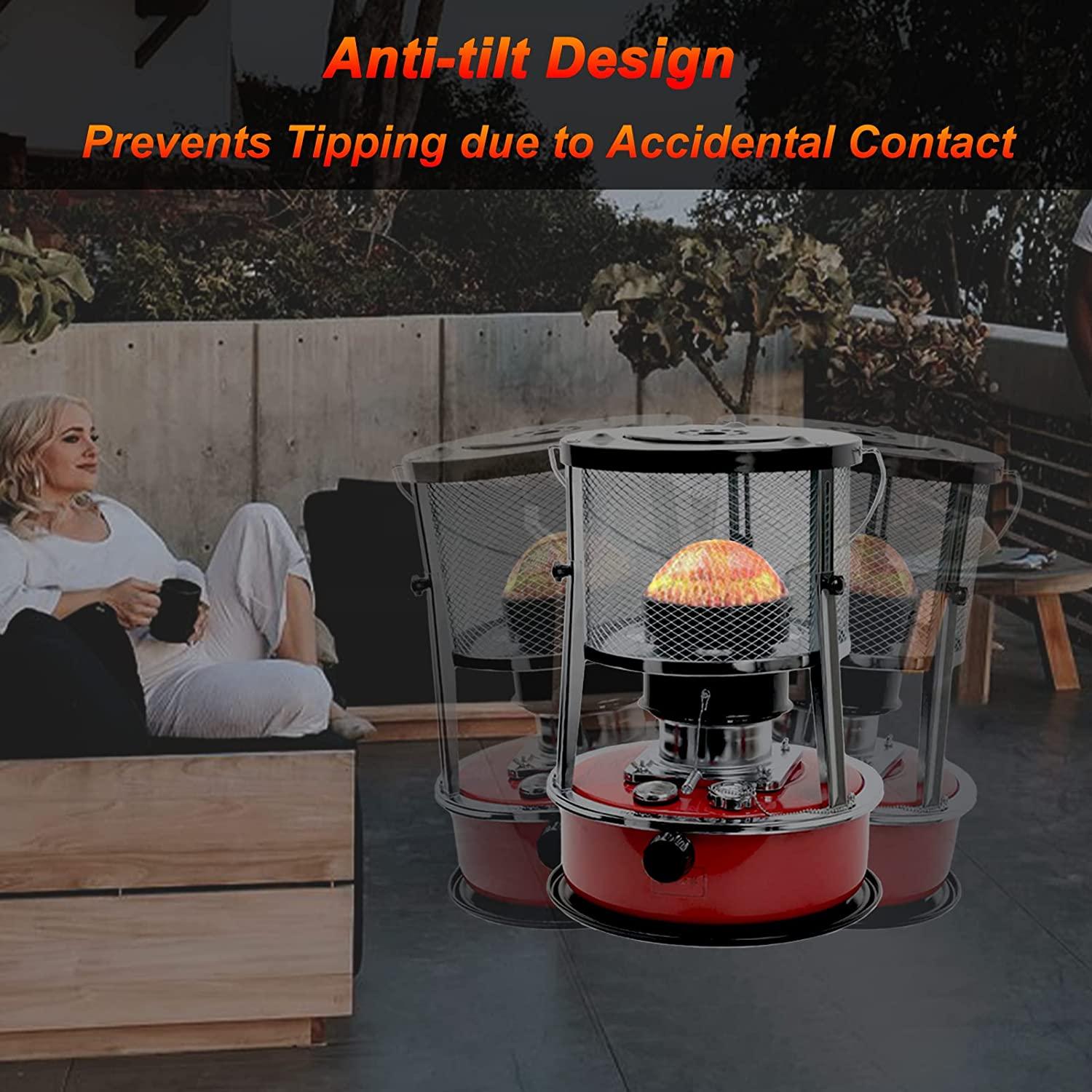 - ?360° Efficient Radiant Heat: The large reflective screen ensures that the heat does not escape upwards, but is distributed into the environment. In this way, portable kerosene heater can quickly and efficiently provide pleasant radiant heat to the installation site and to those nearby