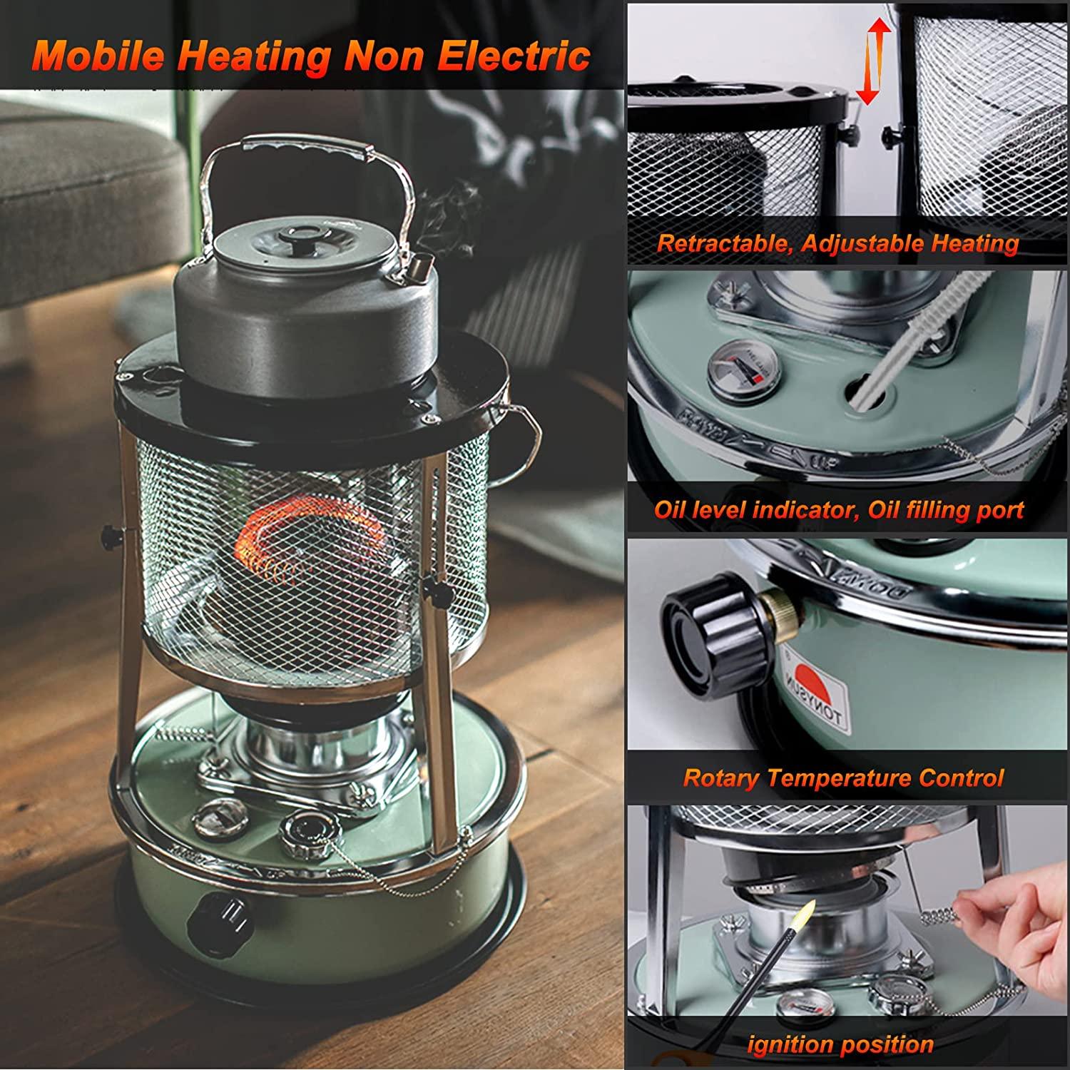 - ?Portable Heater Non Electric, Instantaneous Heating: Excellent emergency heat source. All you need for a kerosene heater is kerosene and you will have plenty of heat. It will heat up in 1 second after ignition, and it will heat up instantly, and there is no need to wait for heating anytime, anywhere. Don’t worry about unexpected power outages when hurricanes, heavy rain and snow hit.