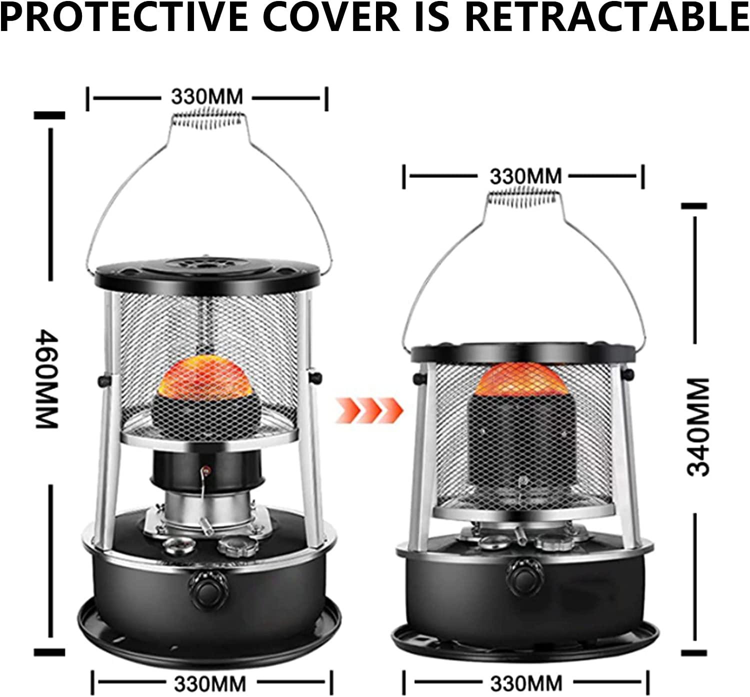 - 【Portable and More Efficient Heating】: Outdoor heater Retractable cover design, control of cover height, easy to carry, combustion chimney is made of special metal, so that the kerosene can be fully burned, and the heating is faster and more efficient.