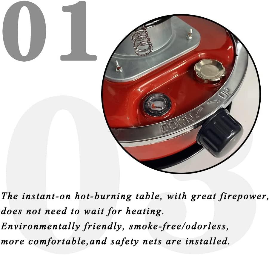 - ✔ Safe to use: The oil stove has automatic shutdown (tilt protection), automatic flameout and low oxygen protection functions to ensure safe use.
