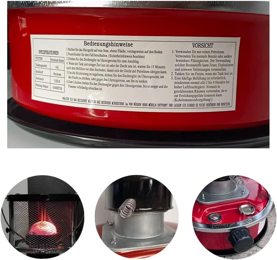 Kerosene Heater with Storage Bag 4.6L Stove Heater Burner Non Electric Kerosene Stove Indoor Burner Camping Oil Heaters with Overheat Protection and 6 Wicks (Color : Red-4.6L)