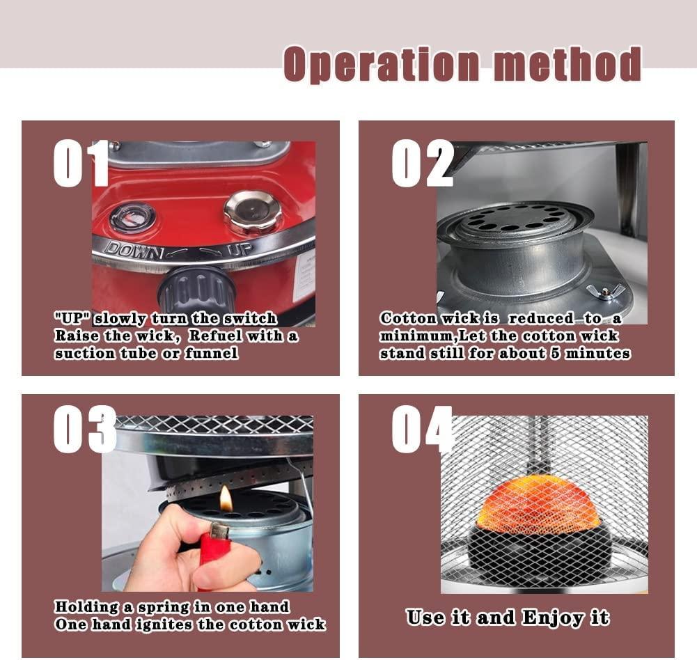 - ✔ No electric heating indoors: The combustion chimney of the portable oil stove is made of special metal, which makes the kerosene burn completely, and the heating is faster and more efficient. Bring warmth and joy to you, your family and friends anytime, anywhere.