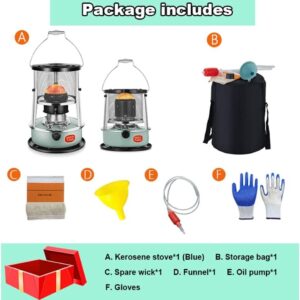Kerosene Heaters for Indoor Use 4.5L Kerosene Stove Heater with Stove Bag Non Electric Heater Low Power Consumption Backpack Hiking Hunting (Color : Blue)
