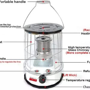 - [EFFICIENT HEATING]:Because the kerosene heater is made of special metal, the kerosene can be completely burned without waiting for warmth. It will heat up in 1 second after ignition, and it will heat up instantly, and there is no need to wait for heating anytime, anywhere.
