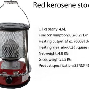 - [PERFECT SIZE]: 33*33*46cm Fuel: Kerosene Fuel tank capacity: 4.5L. Fuel time: 16-21 hours (excluding kerosene fuel).