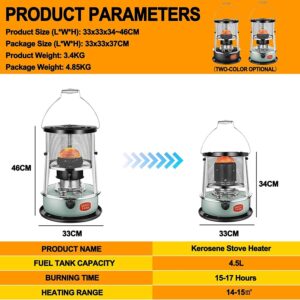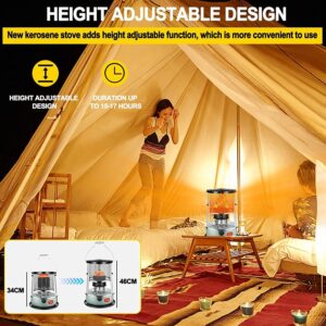 Kerosene Stove Heater, Height Adjustable Oil Heater Portable Stainless Steel Space Heater Burner Camping Oil Paraffin Heaters for Home Indoor Outdoor Camping Deck, 4.5L