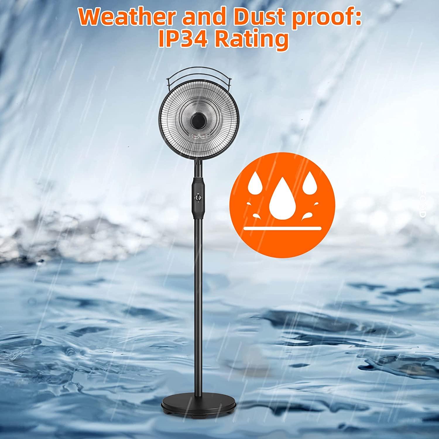 - High quality & safety patio heater : High quality Design with Aluminum Pole guarantee tip over switch – weather proof and dust proof IP34 rating. Golden tube have the characteristics of wear-resistance, high temperature-resistance, corrosion resistance. IP34 certified. Automatic overheat system will shuts the unit off when the parts of the heater overheat.